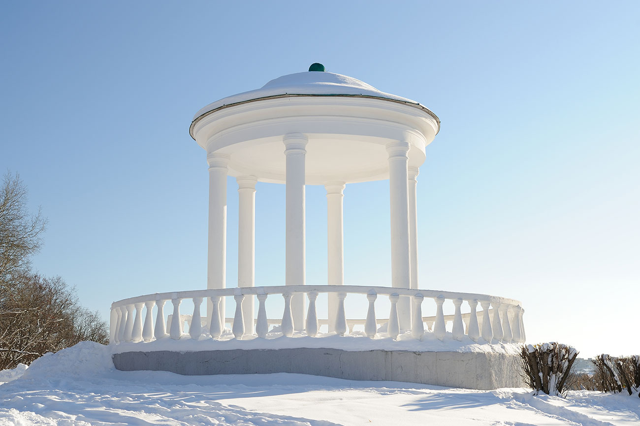 Наконец, в конце 60-х «Дворянское гнездо» благоустраивают: сооружают смотровую площадку с балюстрадой, делают удобный спуск к реке, скульптор Г.П. Бессарабский высекает из гранита новый памятник, а обрыв украшают «тургеневской» ротондой – неизменным спутником свадебных снимков.